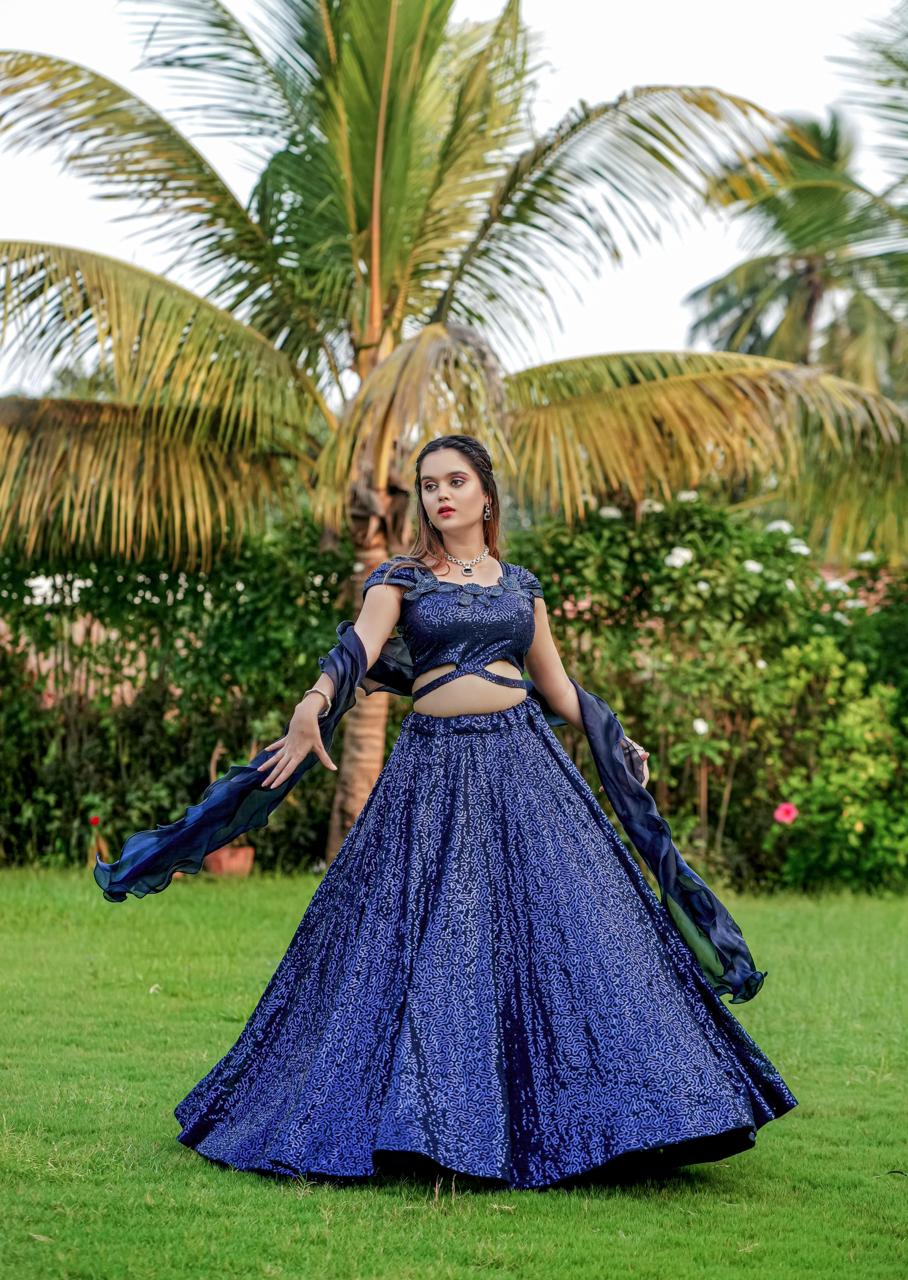Colour :- Dark Navy Blue, Work :- :- Embroidery Sequence