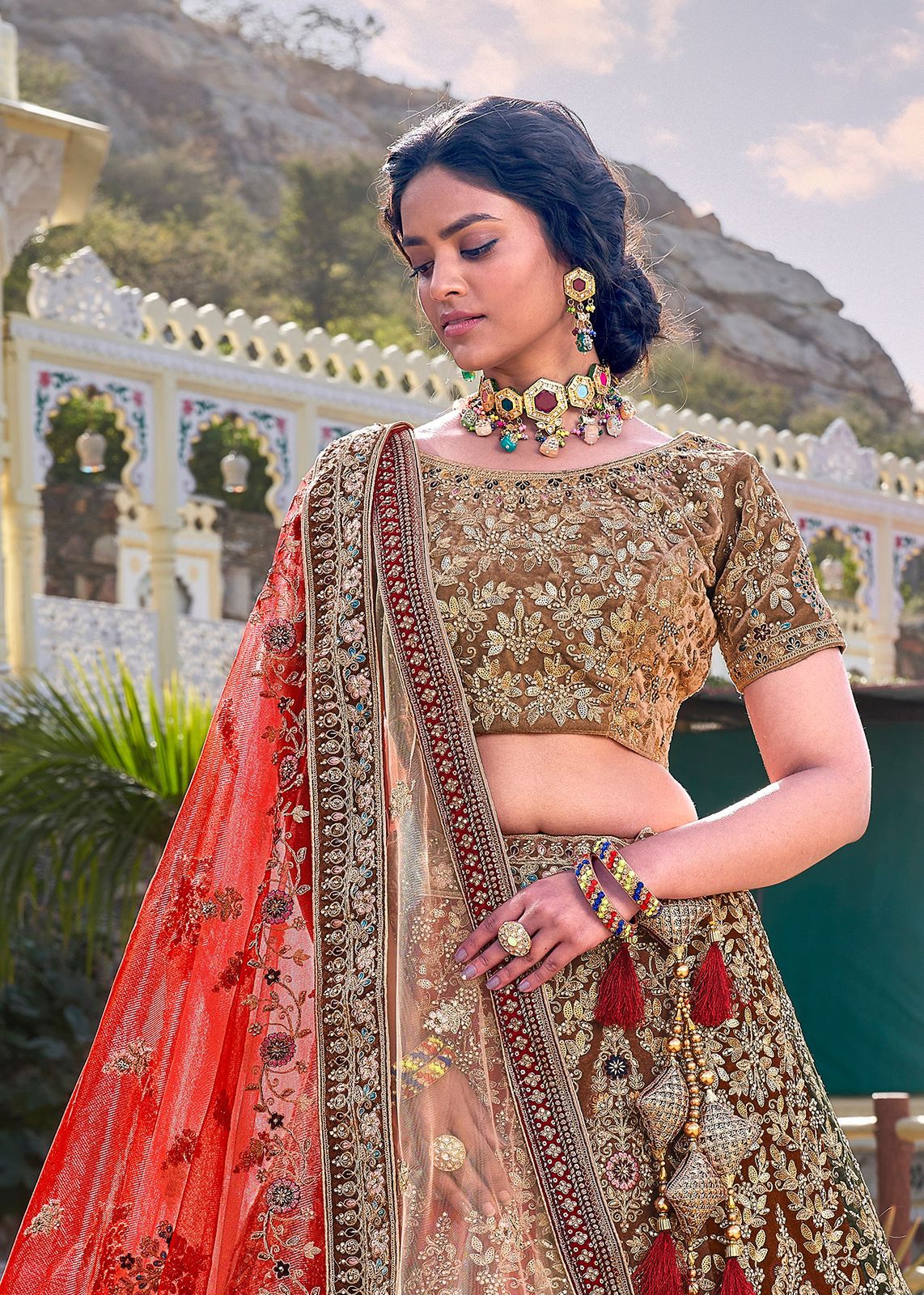 Lace – velvet fabric and work matching to lehenga