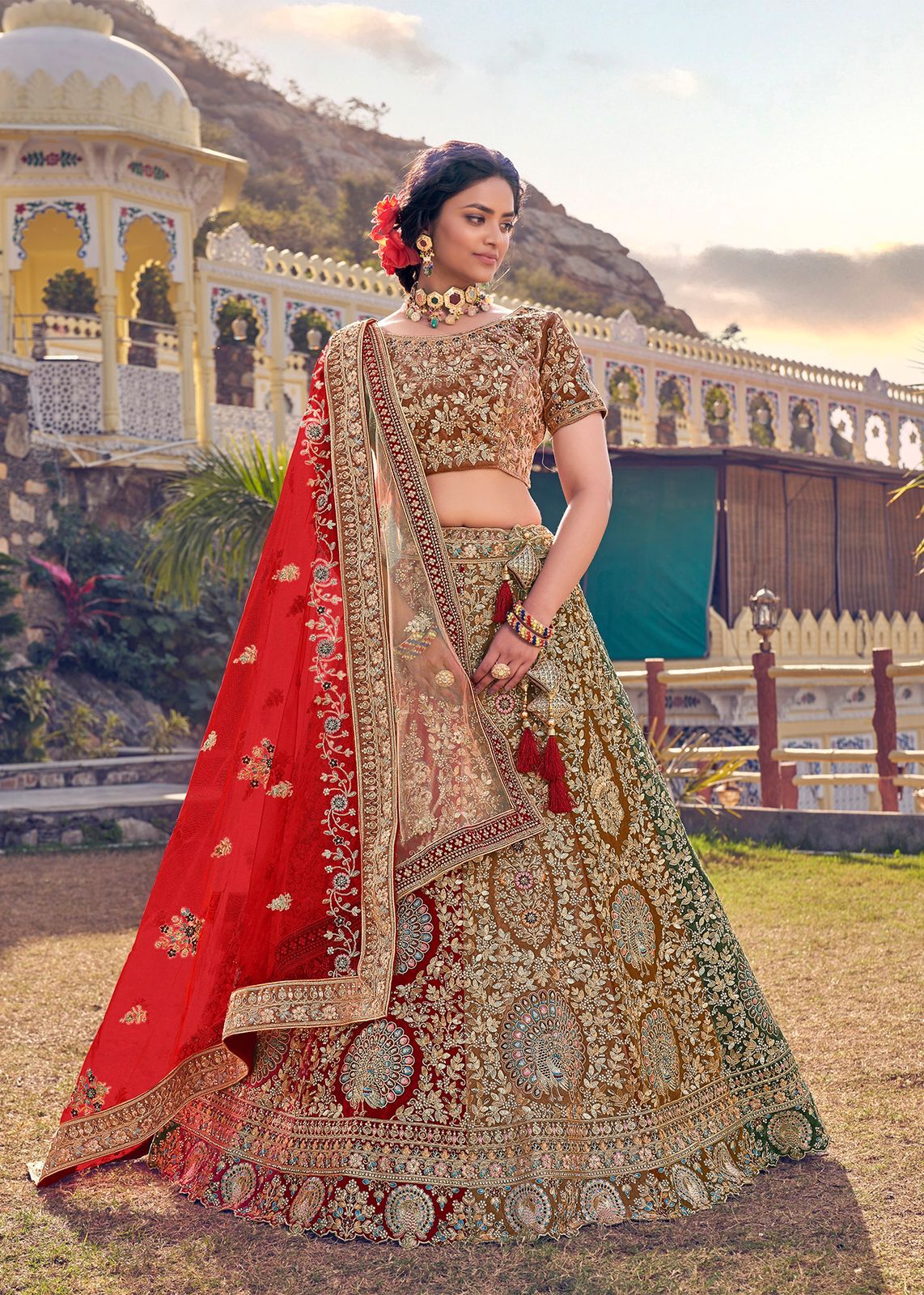 Multi Kali Designer Heavy Bridal Lehenga Choli