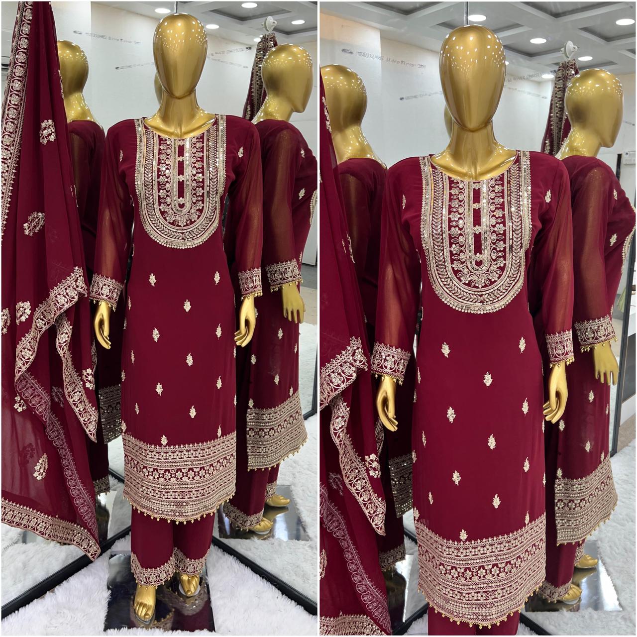 New Designer Collection In Faux Georgette With Heavy Embroidery Coding Dori-Sequence Work.
