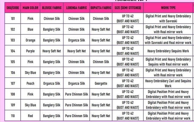 Lehenga size : Upto 42 Inch waist.