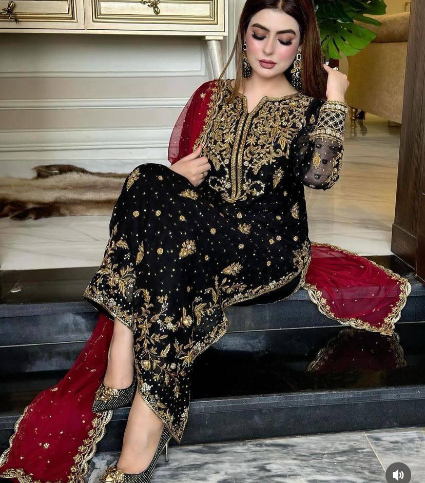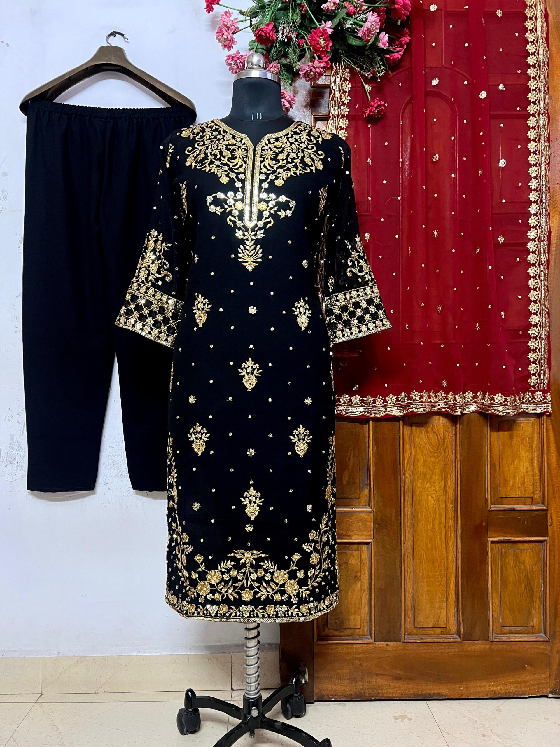 TOP : GEORGETTE WITH SEQUINS EMBROIDERY WORK (FULLY STITCHED) up to 44 Size (FREE SIZE)