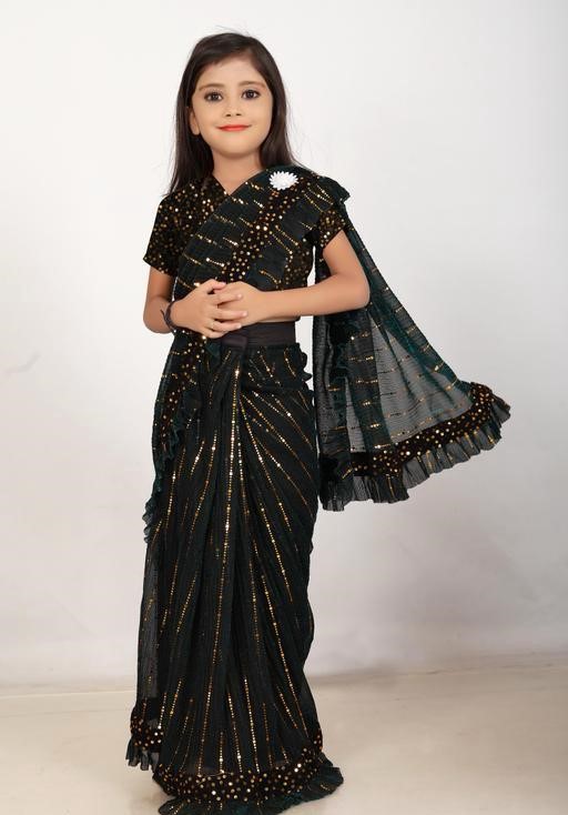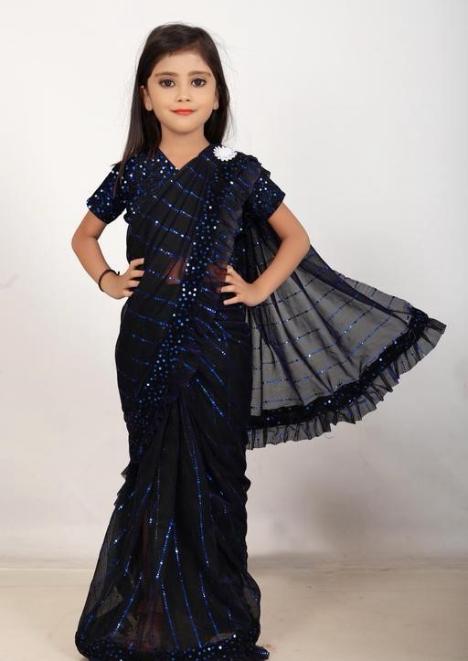 This is our most beautiful saree for the most gorgeous baby kids. This is the fully embellished saree made out from the soft Net material. It was beyond your imagination and expectation. This is a 6 yards of glittery glamorous, classical-contemporary twist.