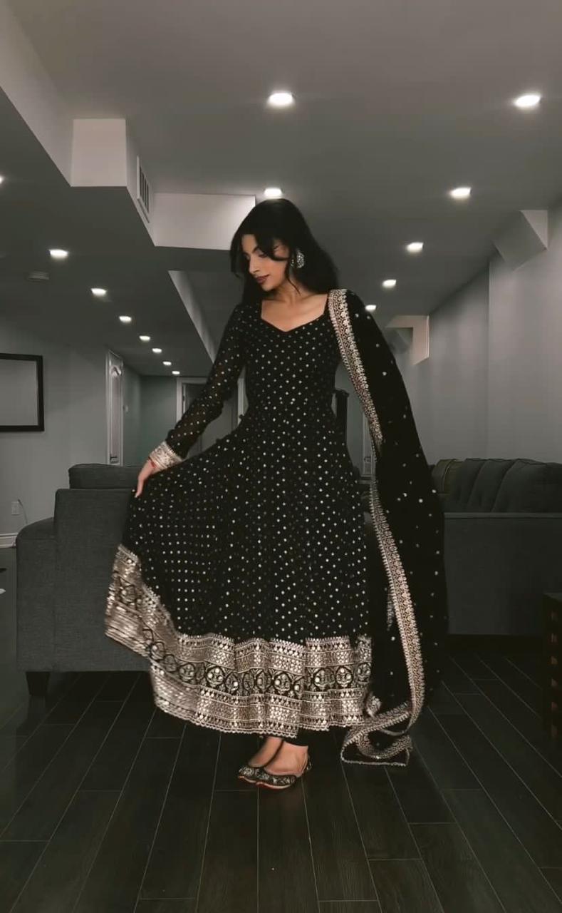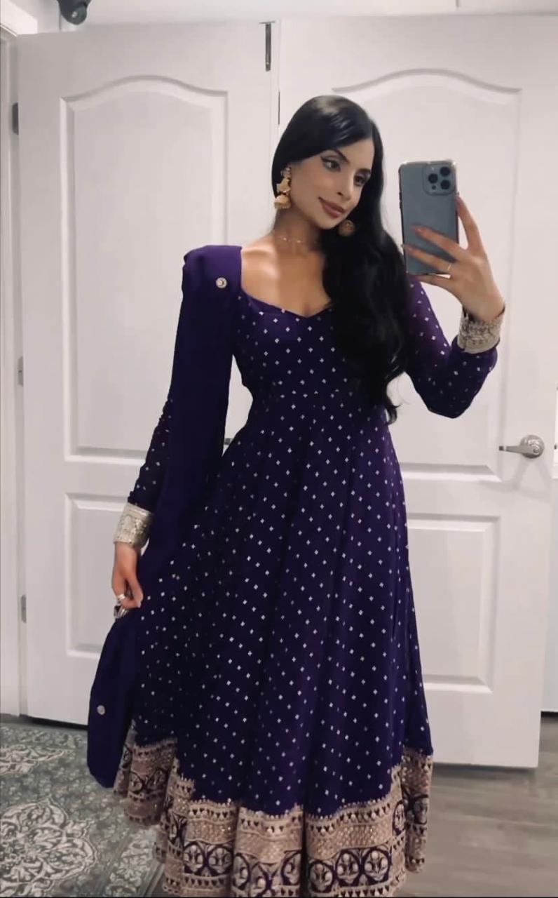 New Designer Party Wear Heavy Embroidery Sequence Work Gown with Attached Pad and Fully Stitched Bottom and Dupatta. Ready to Wear.